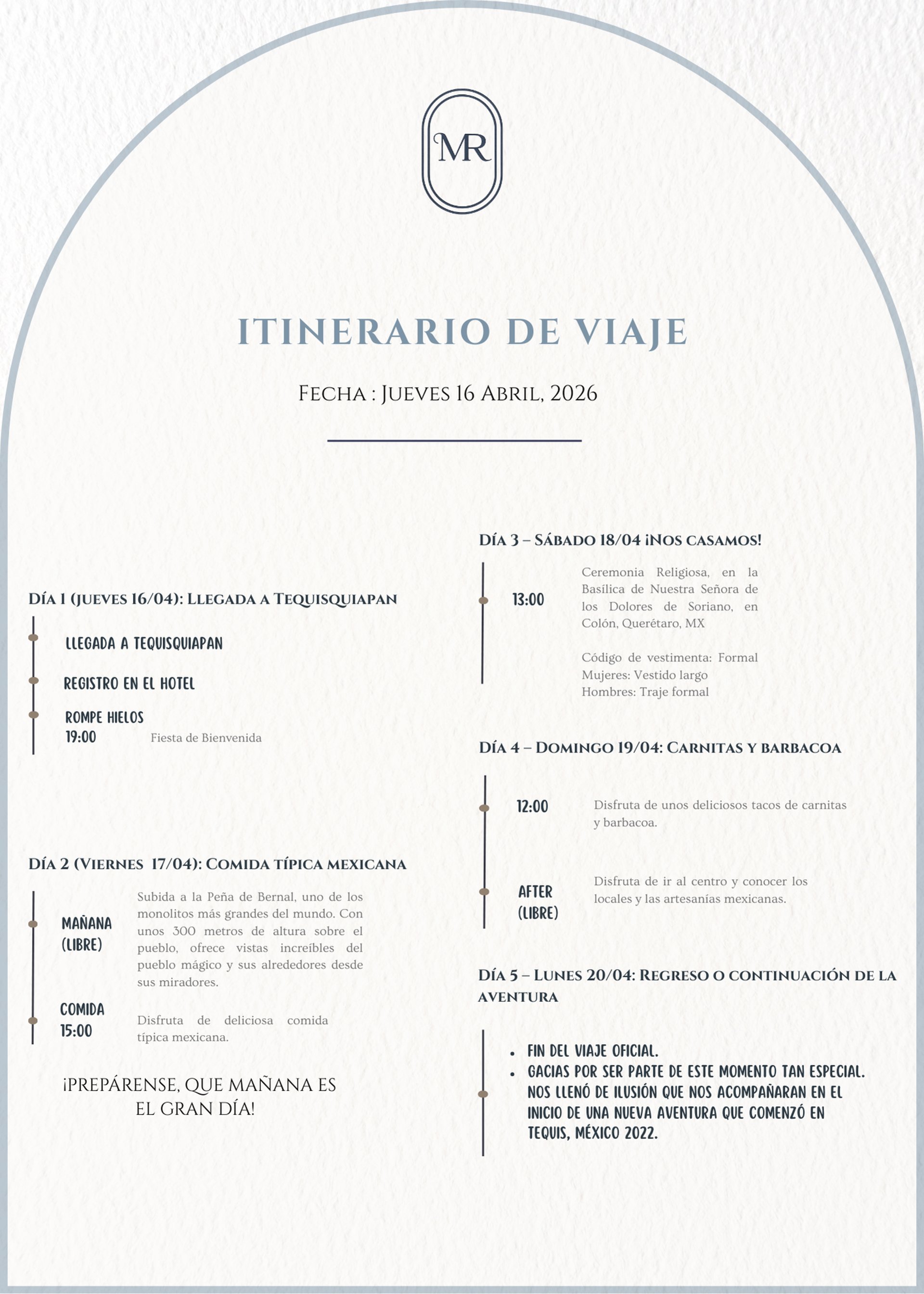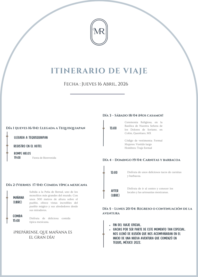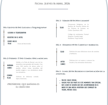 Vuelos, hospedaje y todos los detalles para acompañarnos en este gran día.